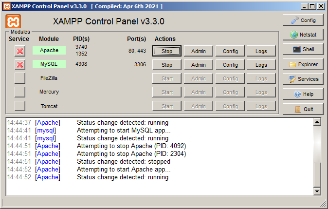 No painel de controle do Xampp é possível startar o apache.